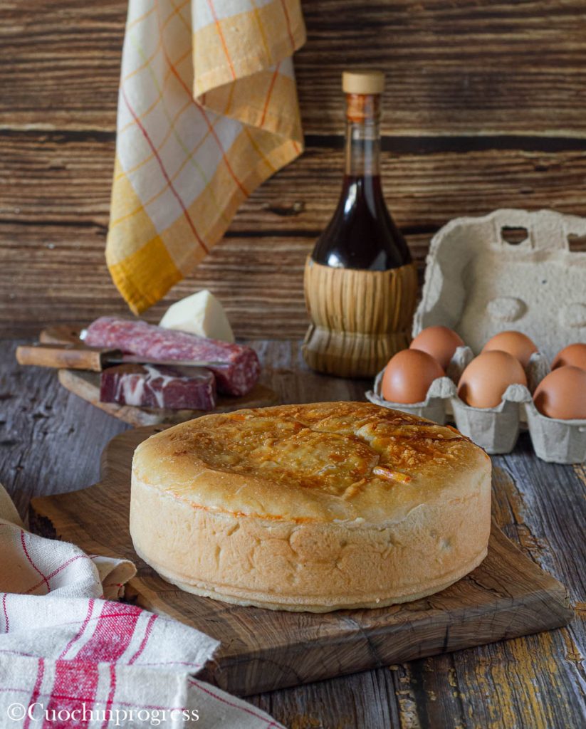 La PIZZA CHIENA (ou « pizza farcie ») est une tarte salée typique de la tradition napolitaine, préparée surtout pendant la Pâques. C’est une recette riche et savoureuse, proche d’un rustique, avec une pâte à base de pain ou une pâte sablée salée qui renferme une garniture généreuse de charcuteries, fromages et œufs.