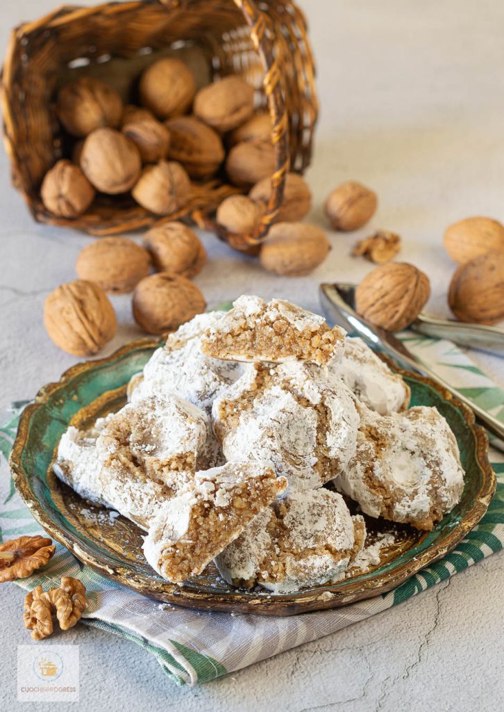 Ces biscuits, au caractère authentique et artisanal, se préparent en quelques minutes et sans farine ni beurre, ce qui les rend naturellement sans gluten et adaptés à tous. Idéals à déguster avec un café, une tisane ou en fin de repas, les pizzicotti aux noix sont une petite douceur automnale qui séduit par leur simplicité et leur goût plein et naturel.