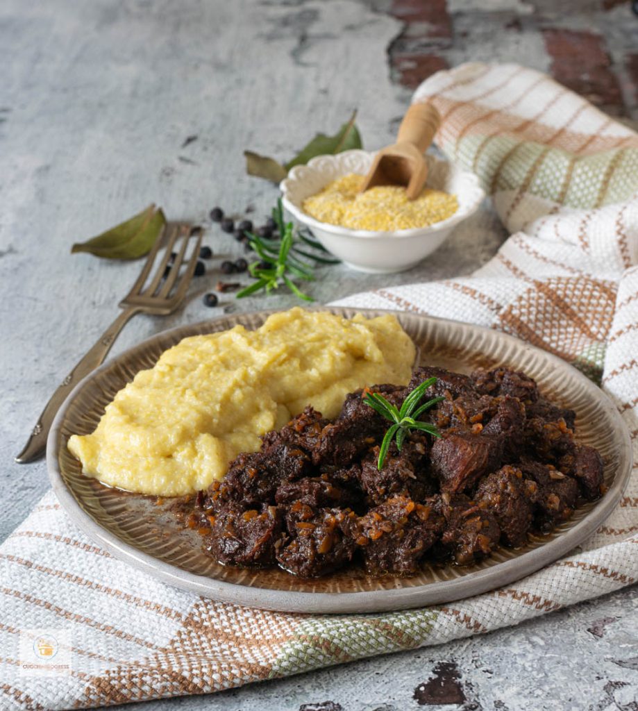 Cuit lentement jusqu’à obtenir une consistance moelleuse et juteuse, le ragoût est servi avec une polenta fumante et onctueuse, qui recueille parfaitement la sauce riche et aromatique. C’est un plat qui évoque la cuisine rustique et conviviale, idéal pour les mois froids et parfait à déguster en famille ou lors d’un déjeuner dominical. Un comfort food d’autrefois, capable de réchauffer le cœur et le palais avec sa bonté authentique et son parfum irrésistible.