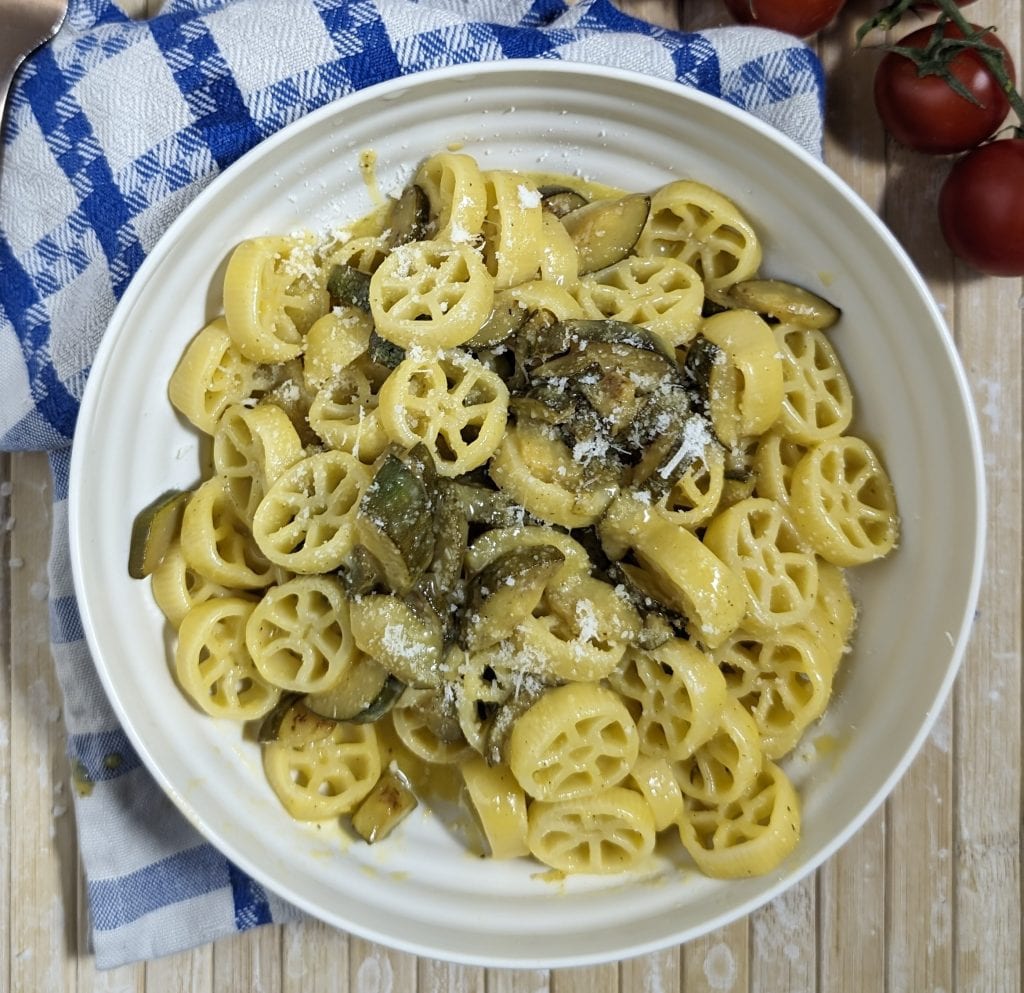 La carbonara de courgettes est prête à être dégustée, encore bien chaude. À votre goût, vous pouvez ajouter une pincée de poivre noir et du pecorino râpé.