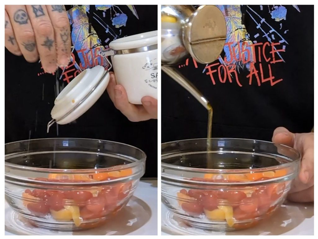 En attendant, coupez les tomates cerises en deux et assaisonnez-les avec de l’huile et du sel. Les tomates cerises sont une variété de petites tomates sucrées qui se prêtent bien à ce type de recette. Avec leur goût frais et acidulé, elles équilibrent le goût intense des aubergines et du bœuf cuit. Il est possible d’assaisonner les tomates cerises avec d’autres épices, comme de l’origan, du basilic ou du piment.