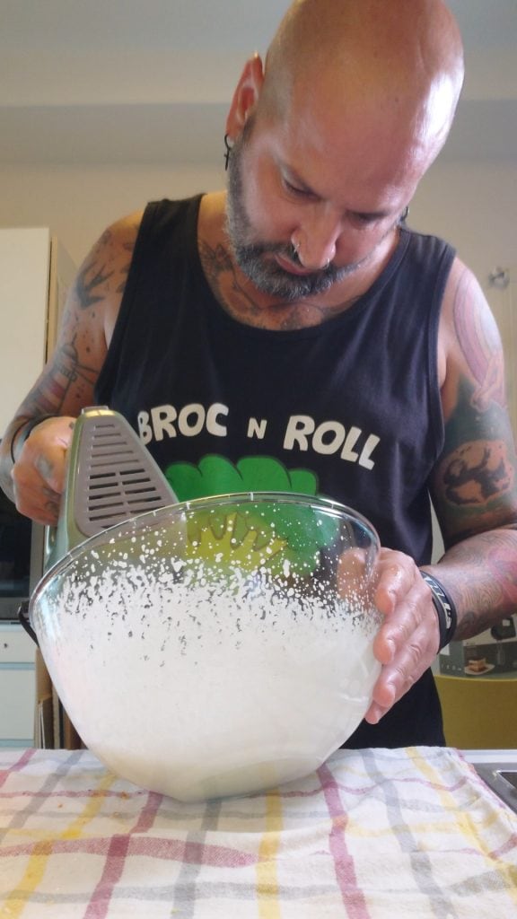 Dans un autre saladier, de préférence plus grand et bien froid, verse la crème liquide fraîche (le saladier et les fouets doivent également être froids pour un résultat optimal).