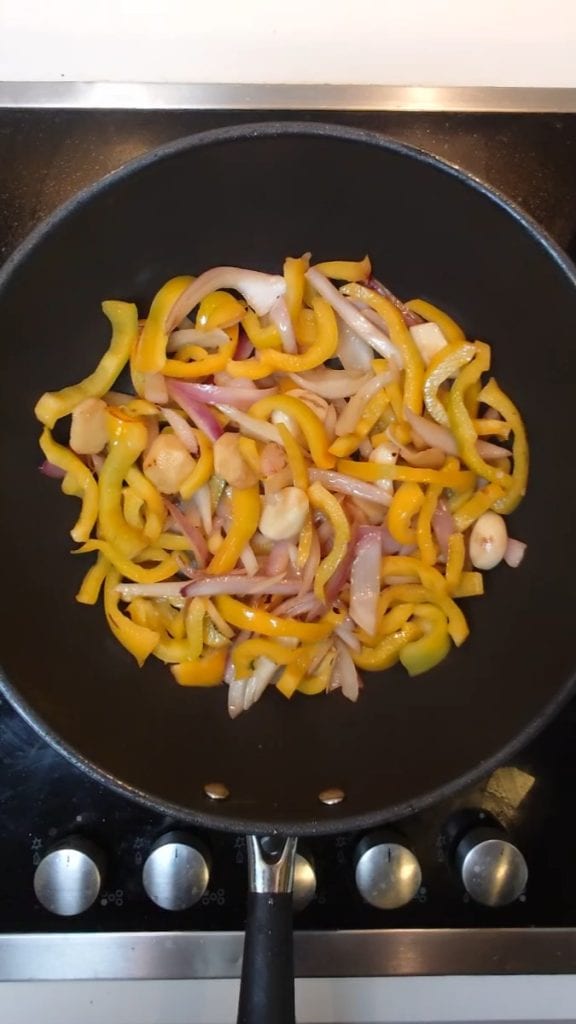 Ajoutez ensuite les poivrons jaunes et faites-les sauter pendant 5-6 minutes.