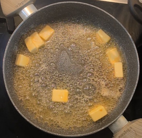 • Lorsque le beurre est complètement fondu, ajoutez les feuilles de sauge fraîches dans la poêle. Laissez la sauge rissoler pendant quelques minutes à feu moyen-doux, jusqu’à ce qu’elle devienne croustillante. Faites attention à ne pas brûler la sauge, sinon le goût de l’assaisonnement pourrait devenir amer.