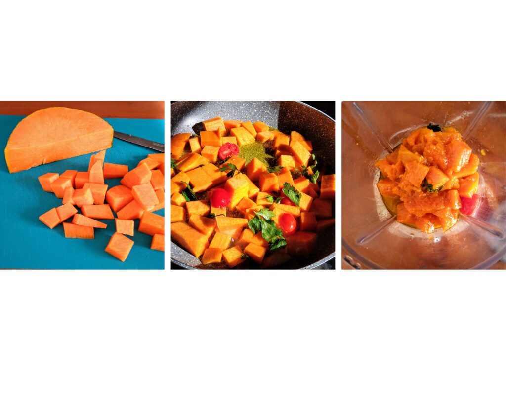Ensuite, mixez le potiron pour obtenir une crème dense et homogène.