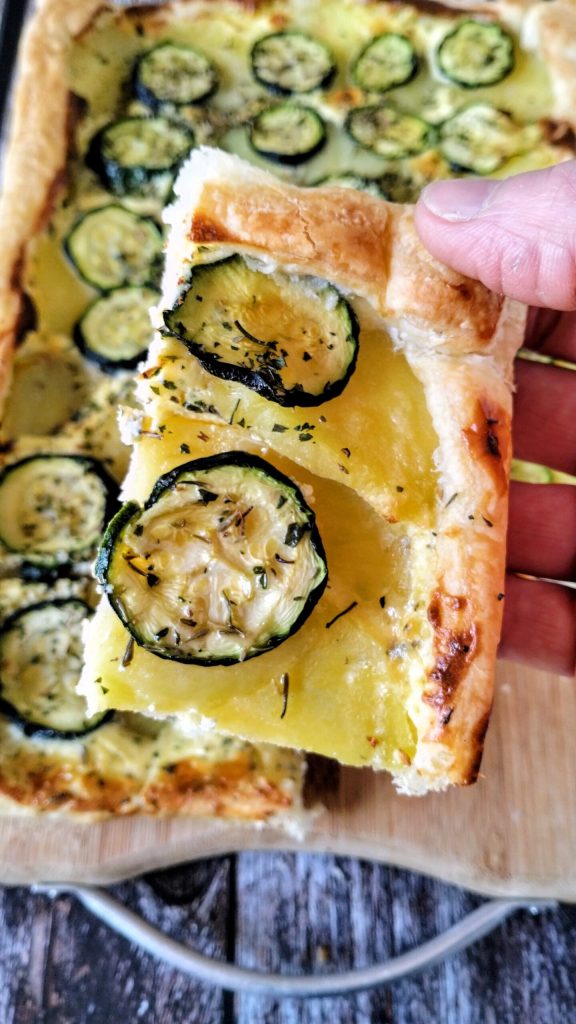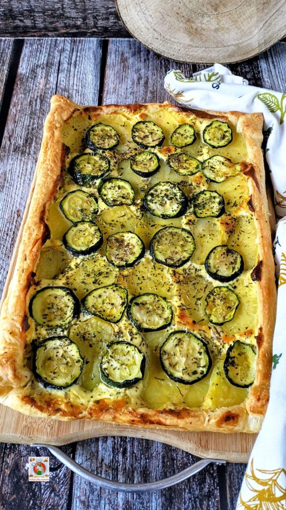 Une recette facile et rapide, de celles que l’on prépare presque les yeux fermés, mais qui font toujours leur effet. Le secret ? Une base croustillante et dorée, une garniture crémeuse à base de fromage à tartiner, parfumée au thym et au persil frais, et de nombreuses rondelles fines de courgettes et de pommes de terre. Un mélange simple mais gagnant, qui séduit dès la première bouchée.