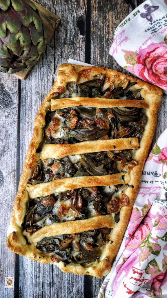 Savoureuse et spectaculaire, la tarte salée aux artichauts, scamorza et jambon cuit est un rustique qui allie à la perfection les saveurs authentiques et l’apparence spectaculaire.