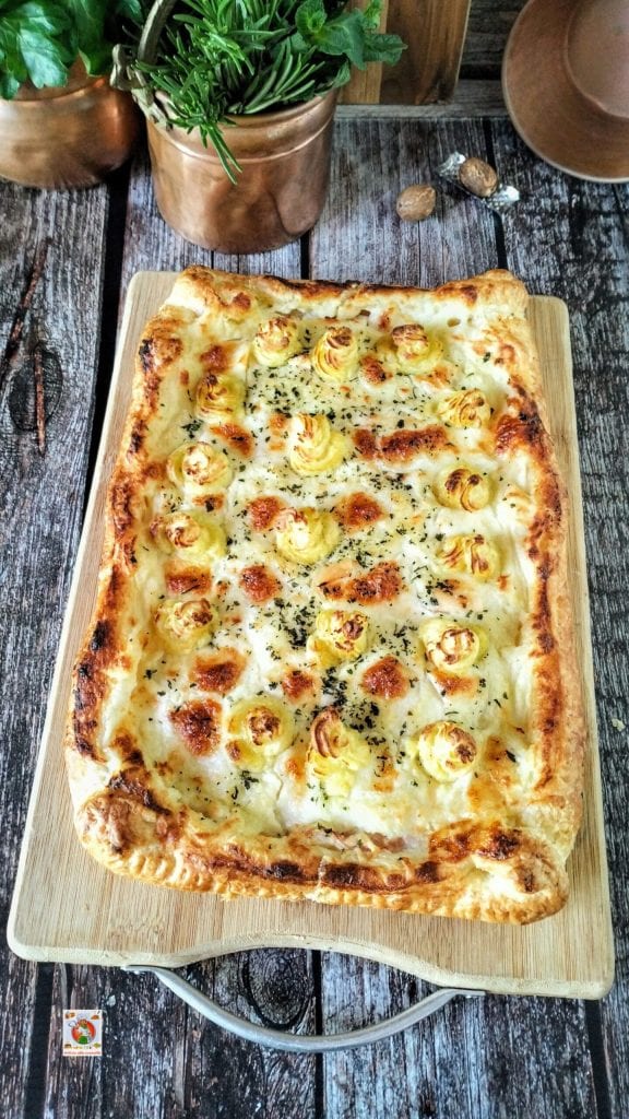 Sa préparation est un moment de pure satisfaction : étaler la crème de pommes de terre, superposer le jambon cuit et la provola, puis refermer le tout dans une coque croustillante de pâte feuilletée. Et quand le four commence à diffuser ce parfum inimitable… eh bien, il est impossible de résister!