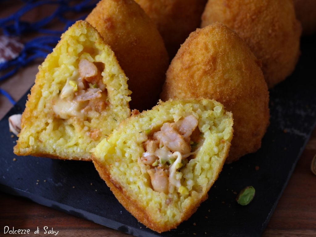 Deux fois par an, j’ai vraiment envie de préparer des arancines. Les dernières que j’ai faites étaient des arancines crevettes et pistaches, une combinaison que j’aime et que j’ai voulu refaire à la maison. Oui, parce que vivant à l’étranger, même si je les trouve souvent maintenant, elles n’ont pas le goût des classiques arancines siciliennes. Ainsi j’ai la prétention de dire que les miennes sont meilleures car je suis une recette éprouvée depuis des années et le résultat est vraiment top. Voyons ensemble comment les préparer dans la recette suivante.
