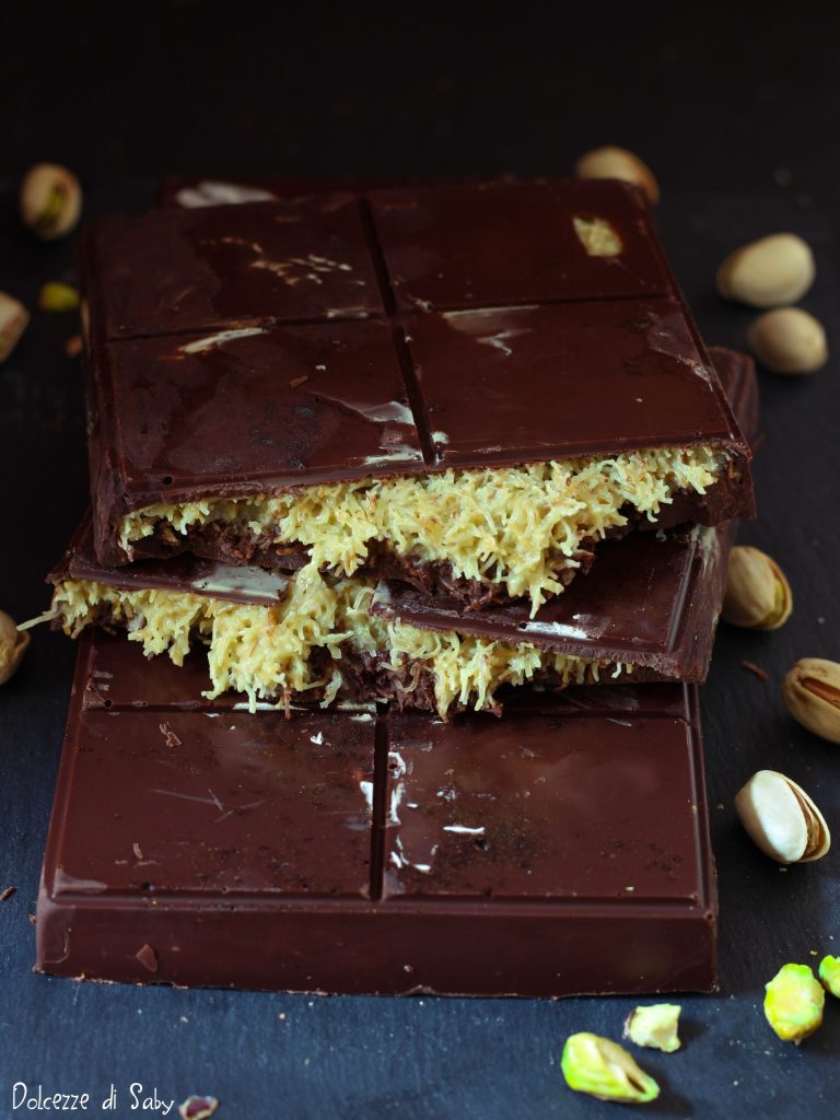 AAATTENTION j’ai fait le Chocolat Dubai 2 fois et j’ai voulu télécharger des photos des deux fois juste pour vous faire remarquer une différence de couleur. Même si j’ai utilisé dans les deux cas la même recette et la même méthode, vous remarquerez que l’intérieur sur 2 photos est d’un vert plus intense par rapport aux autres 2 photos. Eh bien, cela dépend du fait que j’ai utilisé 2 crèmes de pistache de consistance différente. C’est-à-dire que la quantité de pistache dans le Chocolat Dubai avec l’intérieur moins vert était de 15% tandis que celui avec l’intérieur plus vert était de 20 %. Je pense donc que la différence de couleur dépend de cela
