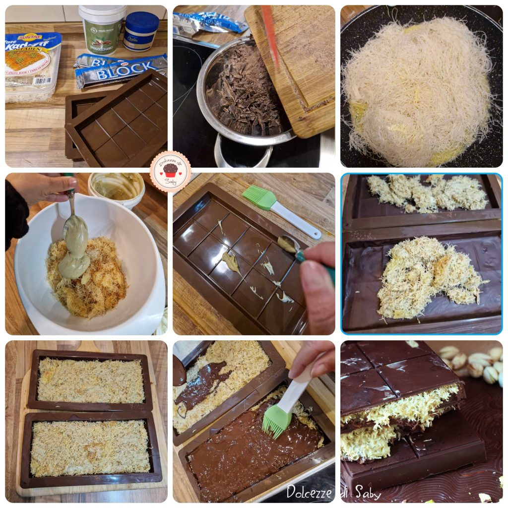 Je vois maintenant le Chocolat Dubai plus que n’importe quelle autre recette, oui parce que sur les réseaux sociaux étrangers, on voit seulement des recettes ayant le mot Dubai, en plus du chocolat, on voit des gâteaux, d’ailleurs j’ai fait le Dubai Cheesecake 😉 pralines, tiramisù et ainsi de suite… J’ai résisté quelques mois, mais quand mon fils, qui étudie à l’extérieur, me dit « maman ce week-end je rentre à la maison, faisons aussi le Chocolat Dubai »… ma réponse vous l’avez bien devinée évidemment. Et me voici pour vous donner la recette. C’est un chocolat trop gourmand je comprends qu’on le vende à prix d’or… mais si comme moi vous n’êtes pas riche pour l’acheter, faites-le chez vous.