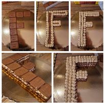 La cream tart de biscuits en forme de lettre F est très facile à faire donc je n’ai pas eu besoin de couper des biscuits pour faire des courbes ou similaires, mais je crois qu’avec un peu de créativité et de patience, on peut créer d’autres lettres ou formes géométriques.