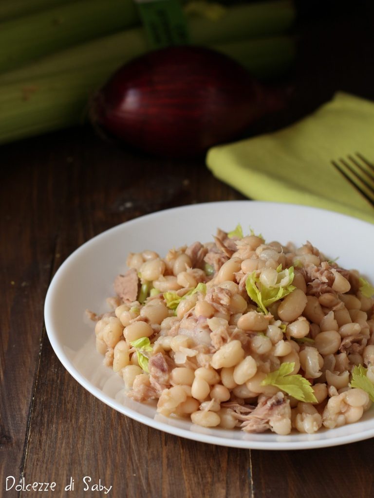 À ce stade, versez les haricots, le thon, le céleri et l’oignon dans un saladier, assaisonnez avec du sel, de l’huile et du vinaigre balsamique blanc et enfin goûtez et ajoutez un peu de poivre.