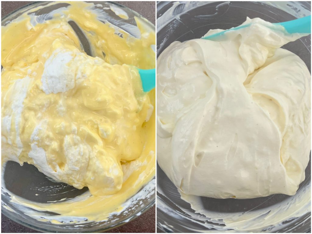 Il ne reste plus qu’à réunir les deux crèmes, verse les jaunes sur la crème/mascarpone et mélange délicatement avec une spatule jusqu’à ce qu’ils soient bien amalgamés. La mousse est prête.