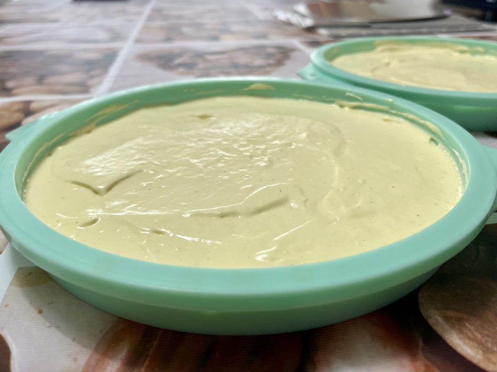 J’ai utilisé 3 moules en silicone de 20 cm, sinon vous pouvez le cuire directement sur la plaque du four recouverte de papier sulfurisé puis découper les disques.