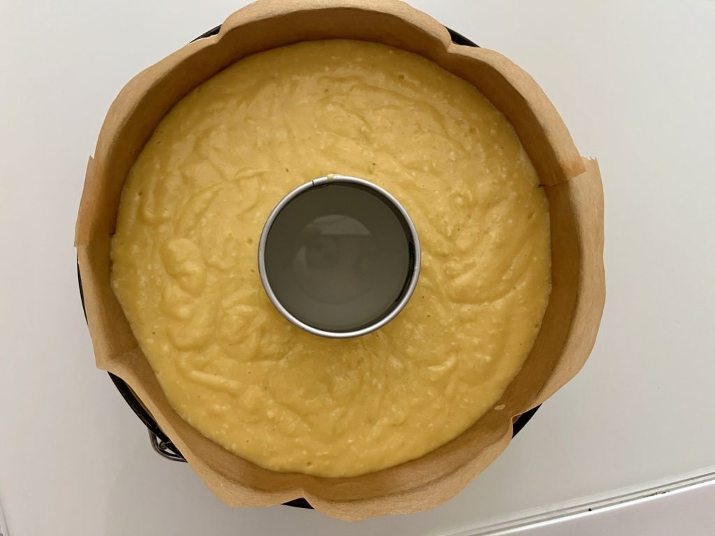 Verse dans le moule et égalise, enfourne à 175° pendant environ 45 minutes. Fais toujours le test du cure-dent avant de sortir le gâteau du four pour vérifier la cuisson.