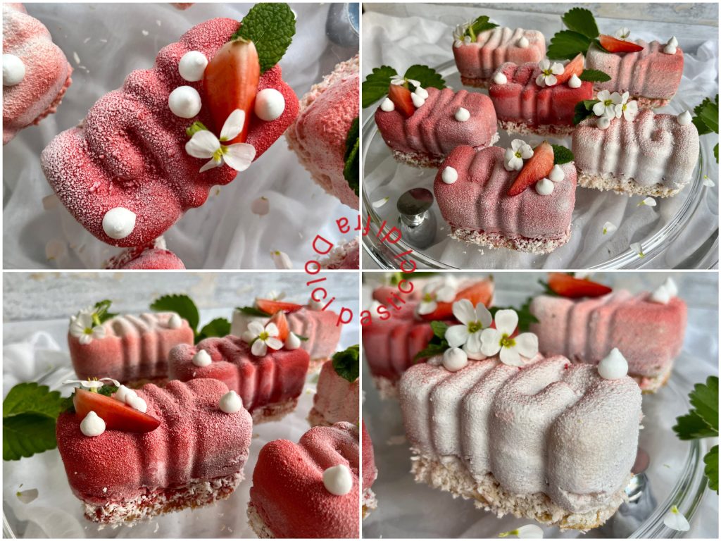 Portions individuelles aux fraises, un dessert frais et gourmand composé de plusieurs préparations, un peu élaboré mais je vous assure pas difficile. C’est un dessert parfait à servir comme semi-freddo à la fin d’un dîner pendant la belle saison ou pour une occasion spéciale.