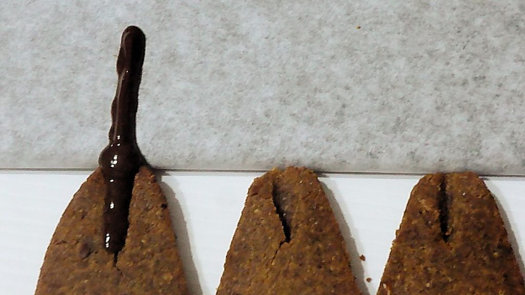 Pour ne pas risquer qu’ils se cassent : ce sont des biscuits, donc pas très grands, et les manches en pâte seraient trop fins et fragiles. En les réalisant en chocolat, en plus d’être plus gourmands, on évite ce risque.