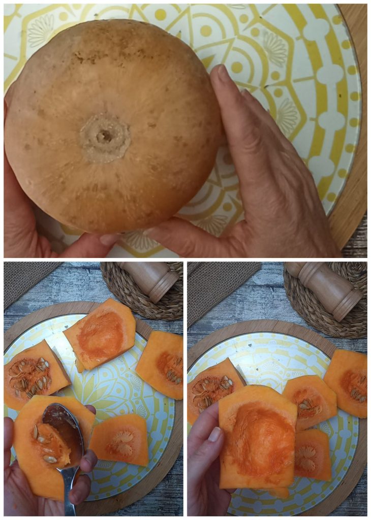 Pour faire les bâtonnets de courge cuits au micro-ondes, commencez par enlever la peau de la courge violon et, s’il y en a, enlevez les graines et les filaments à l’aide d’une cuillère.