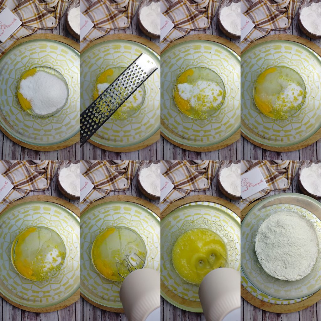Pour préparer les biscuits moelleux au citron, commencez par travailler l’œuf avec le sucre et le zeste râpé du citron bio, préalablement lavé et séché, pendant au moins deux minutes avec les fouets électriques. Ajoutez ensuite l’huile de tournesol et le jus de citron filtré, puis continuez de mélanger jusqu’à bien incorporer tous les ingrédients. Cette étape est fondamentale car l’huile doit être complètement absorbée. Ajoutez ensuite la farine et la levure prévues par la recette.