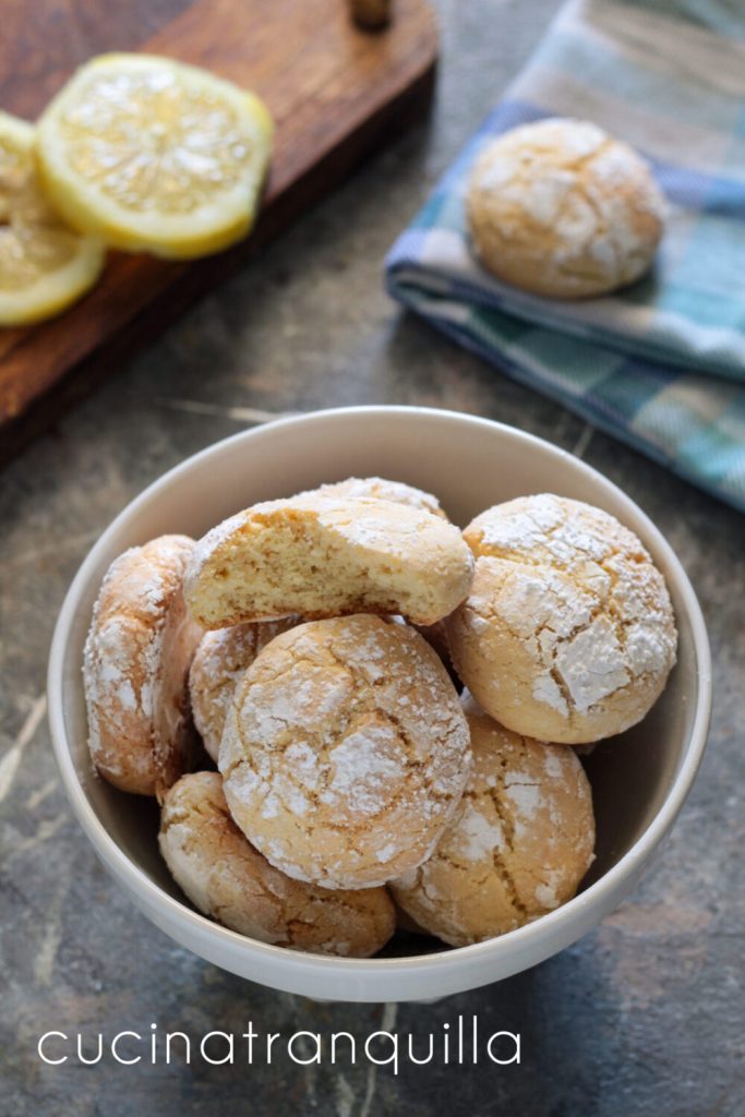Biscuits moelleux au citron, gourmands et irrésistibles, au parfum inimitable. Pour réaliser cette recette il suffit de très peu d’étapes et d’un seul saladier, car la pâte se travaille directement dedans et on ne salit rien d’autre. Ils sont vraiment très simples à faire, il n’y a pas de précautions particulières sauf pour le choix de l’ingrédient essentiel : le citron. Il devra impérativement être bio, car on utilisera son zeste, et très juteux. En effet, il n’en faudra qu’un seul, pour obtenir environ 50 g de produit. Ci-dessous je vous laisse mes recettes testées de mes biscuits moelleux les plus particuliers, tandis qu’en bas de la recette vous trouverez aussi les réponses aux questions les plus fréquentes sur cette recette.