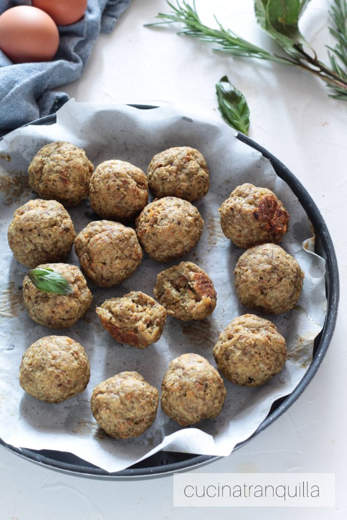 Dispose les boulettes sur un plat de cuisson recouvert de papier cuisson et enfourne dans un four préchauffé à 180° pour 25 minutes.