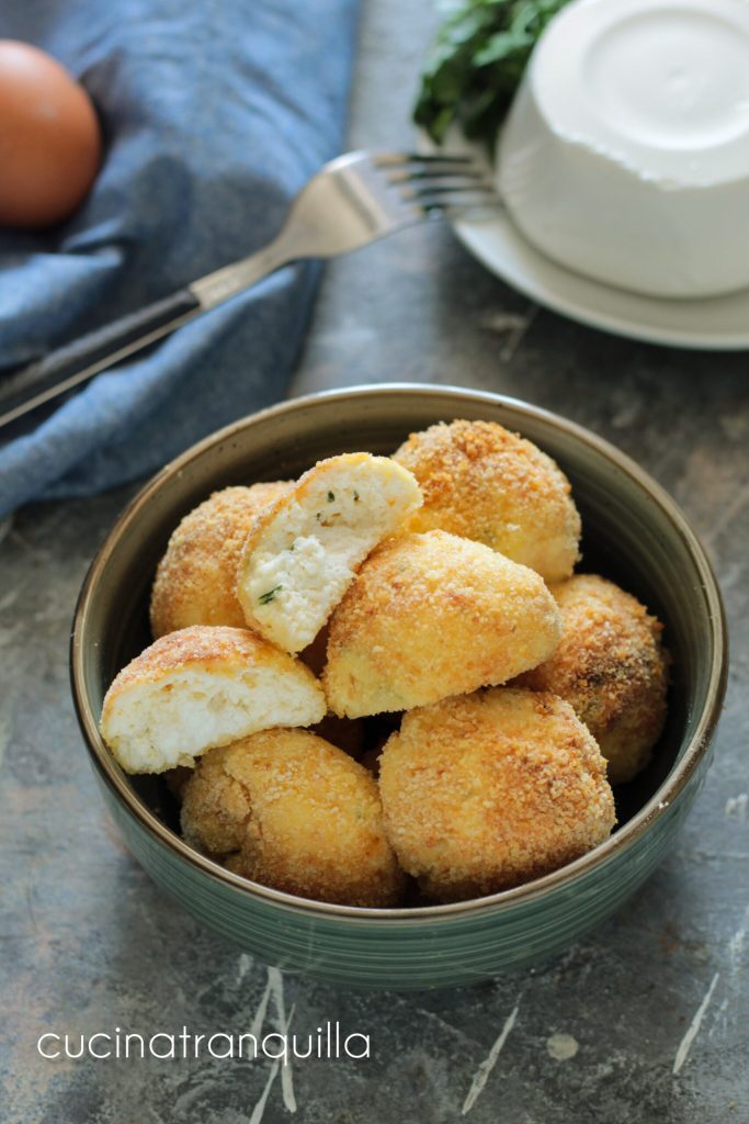 Boulettes de ricotta à la friteuse à air, croustillantes à l’extérieur, très moelleuses à l’intérieur, idéales comme finger food ou en entrée, parfaites également comme plat principal.