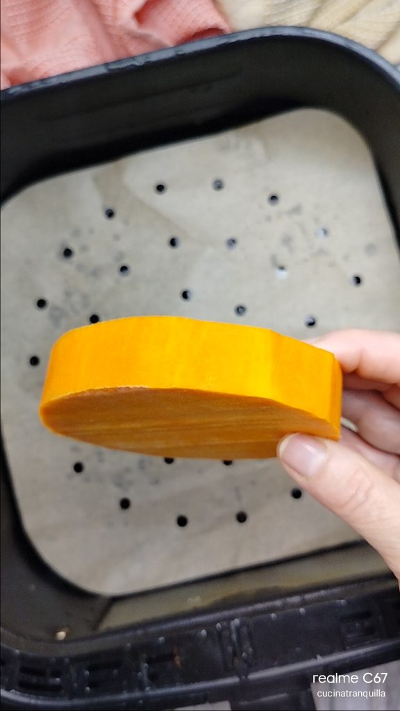 Faites cuire dans la friteuse à air préchauffée à 170° pendant 7-8 minutes, en retournant le potiron à mi-cuisson.