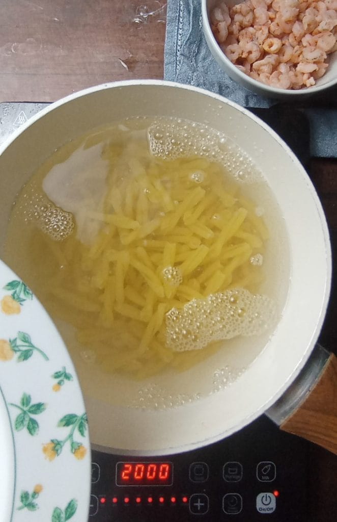 • Pour réaliser les Caserecce crevettes beurre et limoncello, commence par blanchir les crevettes pendant 5 minutes dans une grande quantité d’eau salée.