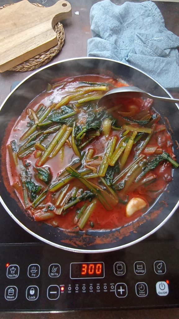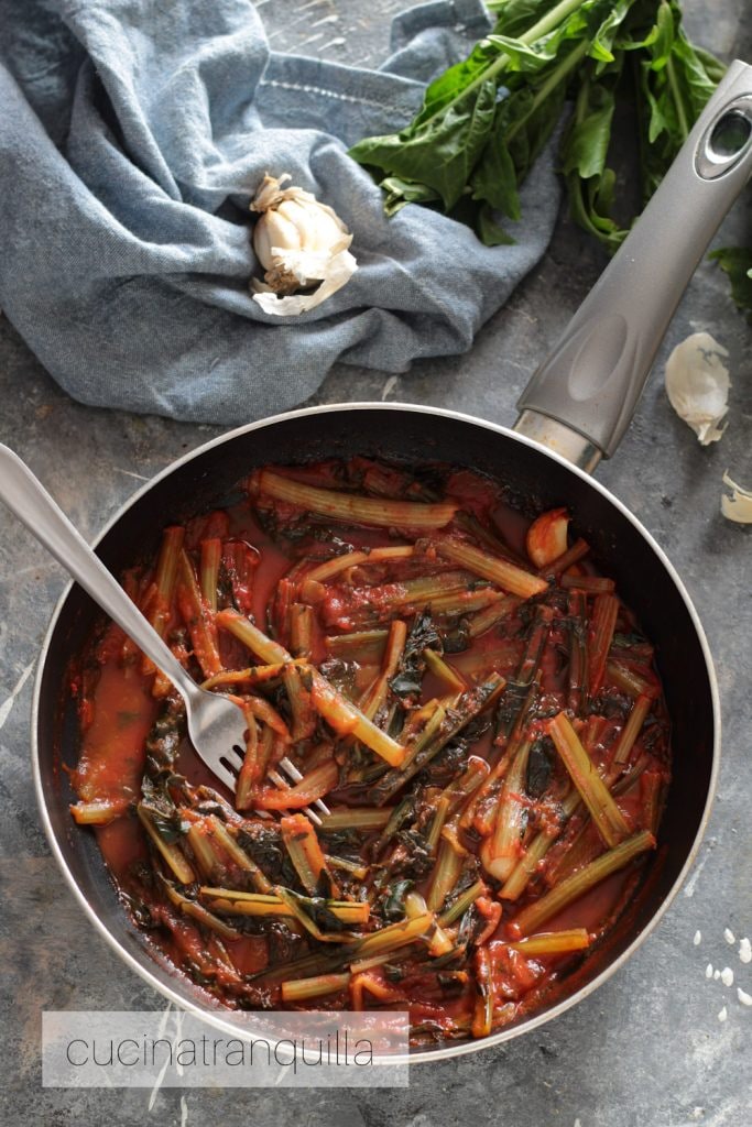 Chicorée sautée à la tomate, un accompagnement facile et rapide, parfait pour accompagner des plats principaux à base de viande.