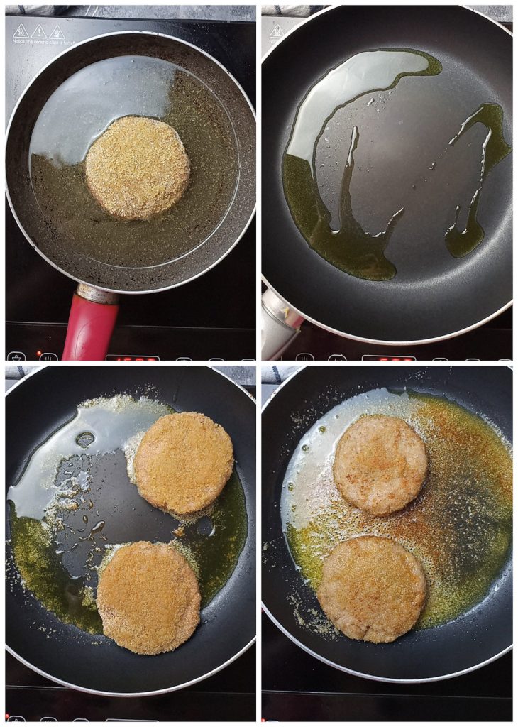 Pour la cuisson à la poêle avec peu d’huile, je vous conseille de cuire deux cordons bleus à la fois dans deux cuillères à soupe d’huile d’olive extra vierge par paire, en les retournant de temps en temps pour éviter que la surface de chapelure ne brûle.