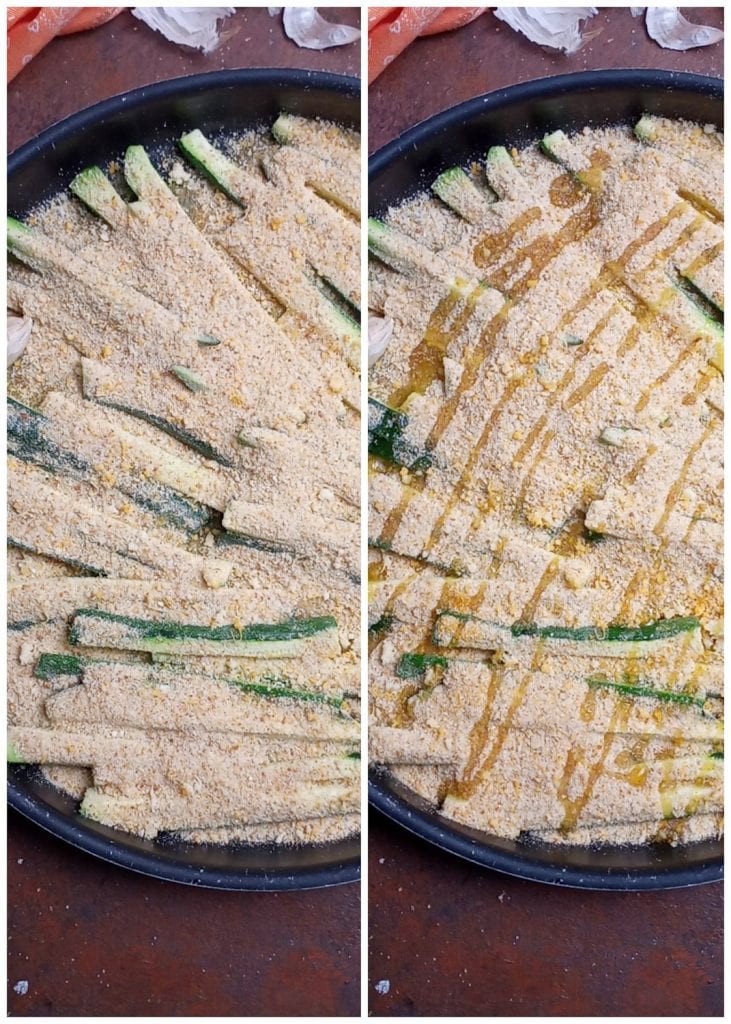 Reprends le plat avec les courgettes et répartis uniformément la couverture de chapelure.