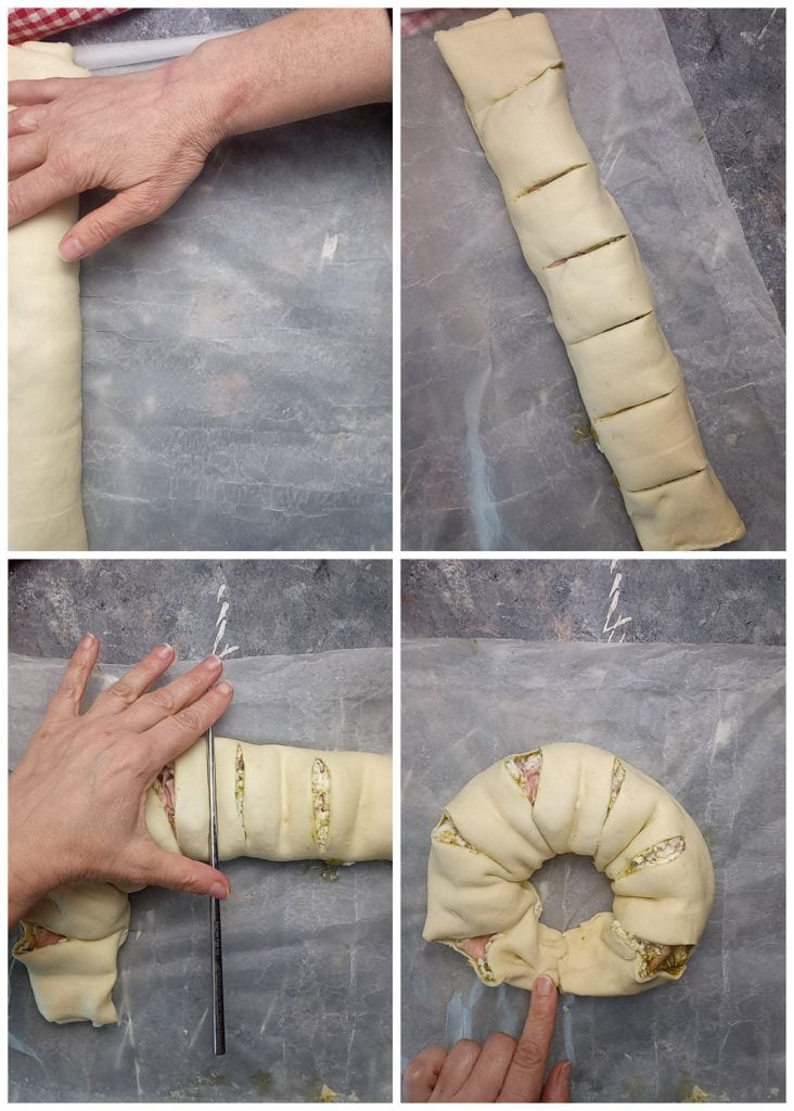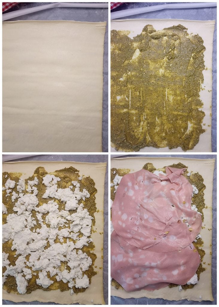 Couronne feuilletée au pesto avec ricotta et mortadelle