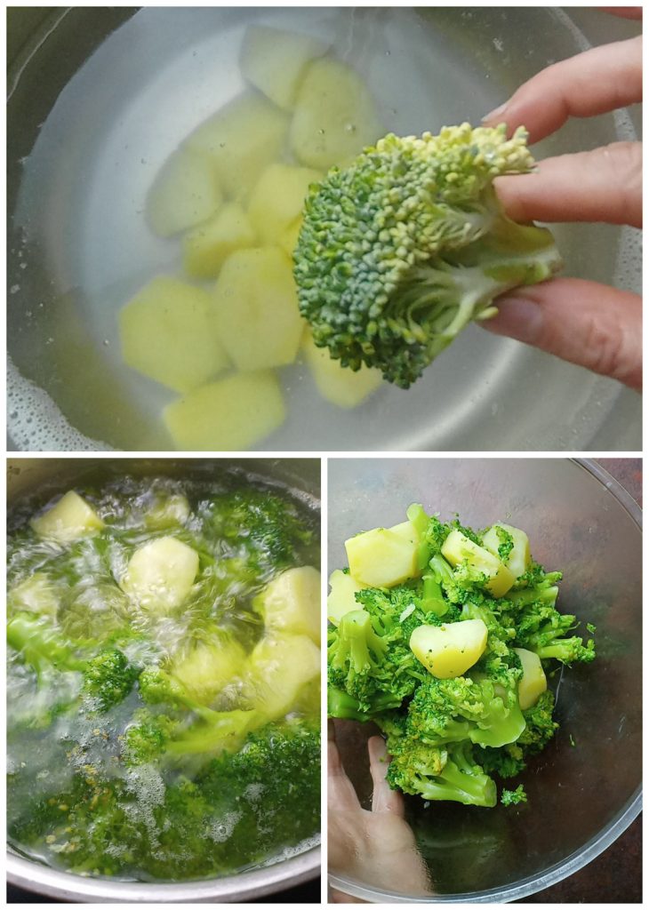 Les pommes de terre et les brocolis peuvent ensuite être cuits dans la même casserole, tout comme, pour la cuisson éventuelle des pâtes à ajouter, vous pouvez utiliser leur eau.