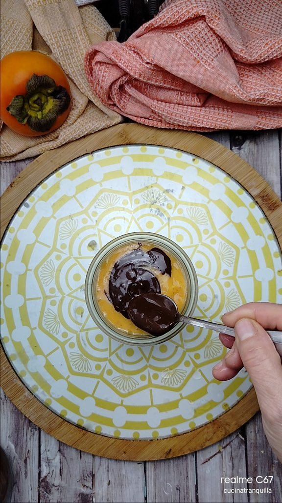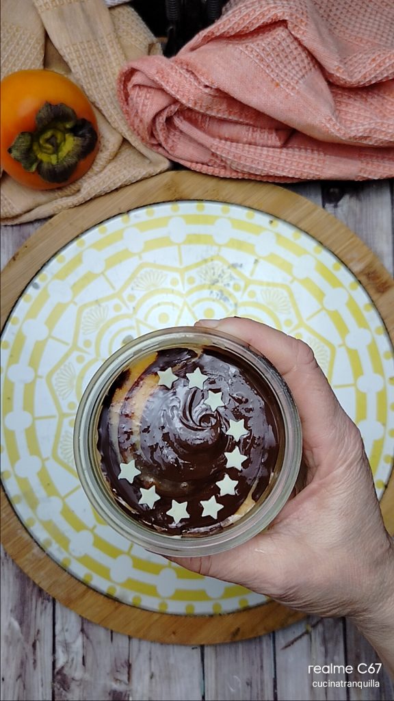 Crème de ricotta et kakis glacée au chocolat noir, un dessert facile et gourmand, pratiquement sans cuisson sauf pour faire fondre le chocolat noir. Idéal aussi pour enrichir la table des fêtes ! On peut le préparer à l’avance et le verser dans des petits verres pour créer de nombreux petits desserts très jolis à présenter. Magnifiques les étoiles en sucre qui rendront l’atmosphère encore plus festive. Le protagoniste de cette recette est le kaki, un fruit riche en vitamines, avec des propriétés laxatives et diurétiques, originaire du Japon et de la Chine, arrivé chez nous en Italie, au début des années 1900. Il existe différents types de fruits, comme le kaki pomme et le kaki vanille parfait pour cette recette. Ci-dessous, je vous laisse quelques idées pour utiliser ce fruit de multiples façons, tandis que plus bas, je vous laisse mes réponses aux questions les plus fréquentes sur ce type de recette.