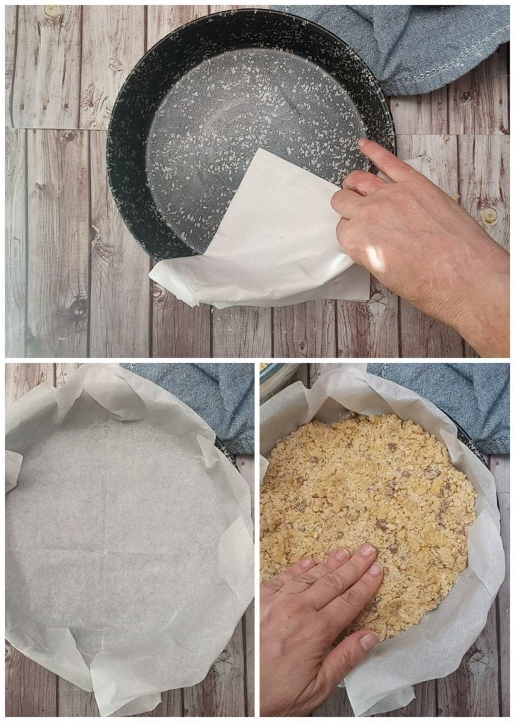 • Tapissez un moule de 20 cm avec du papier sulfurisé.