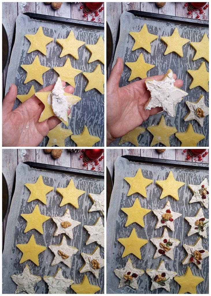 Idéales comme entrée pour la période de Noël, vous pouvez réaliser les étoiles que vous préférez et les garnir avec la mousse de fromage frais et des champignons cuits à la poêle, ou les gratiner au four en ajoutant simplement une cuillère à café de fromage râpé sur le dessus.