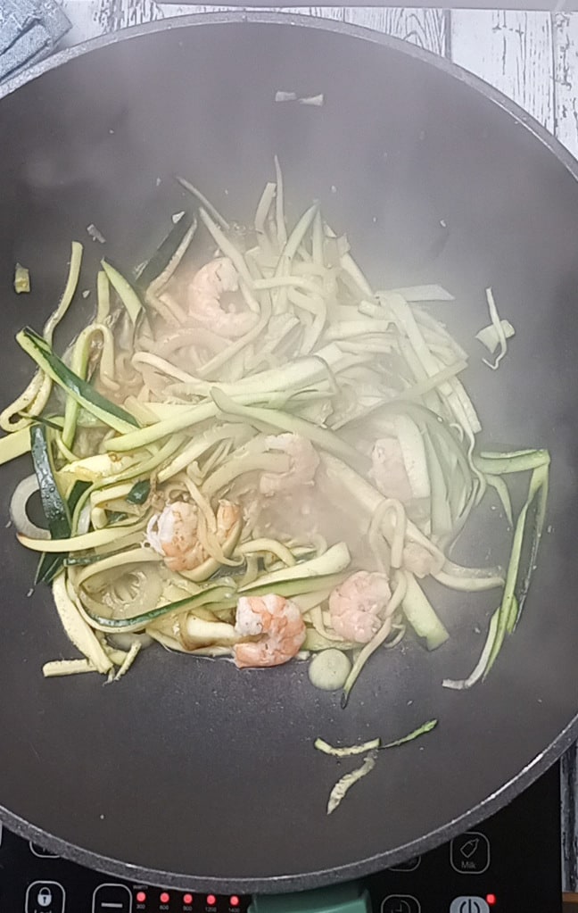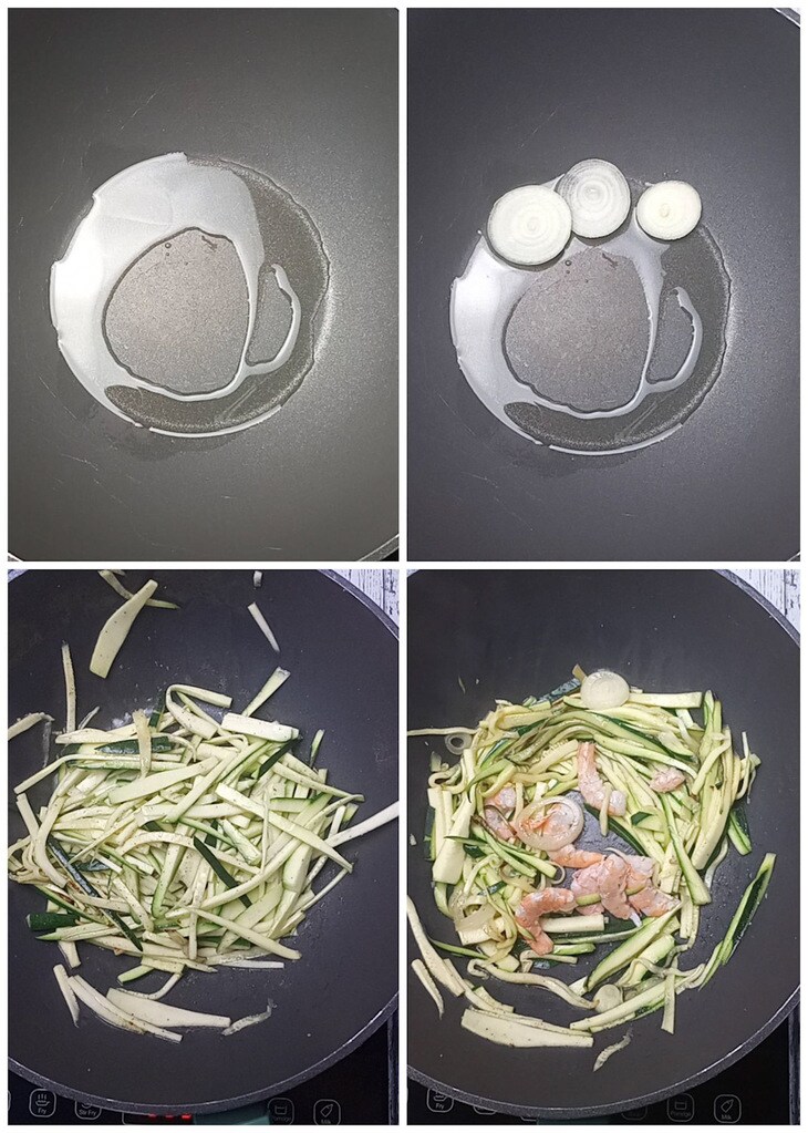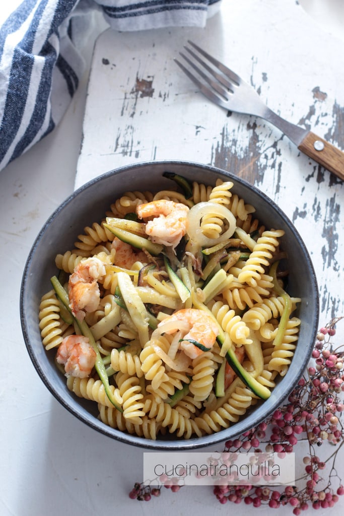 Fusilli aux courgettes et crevettes recette facile et rapide, avec photos étape par étape.