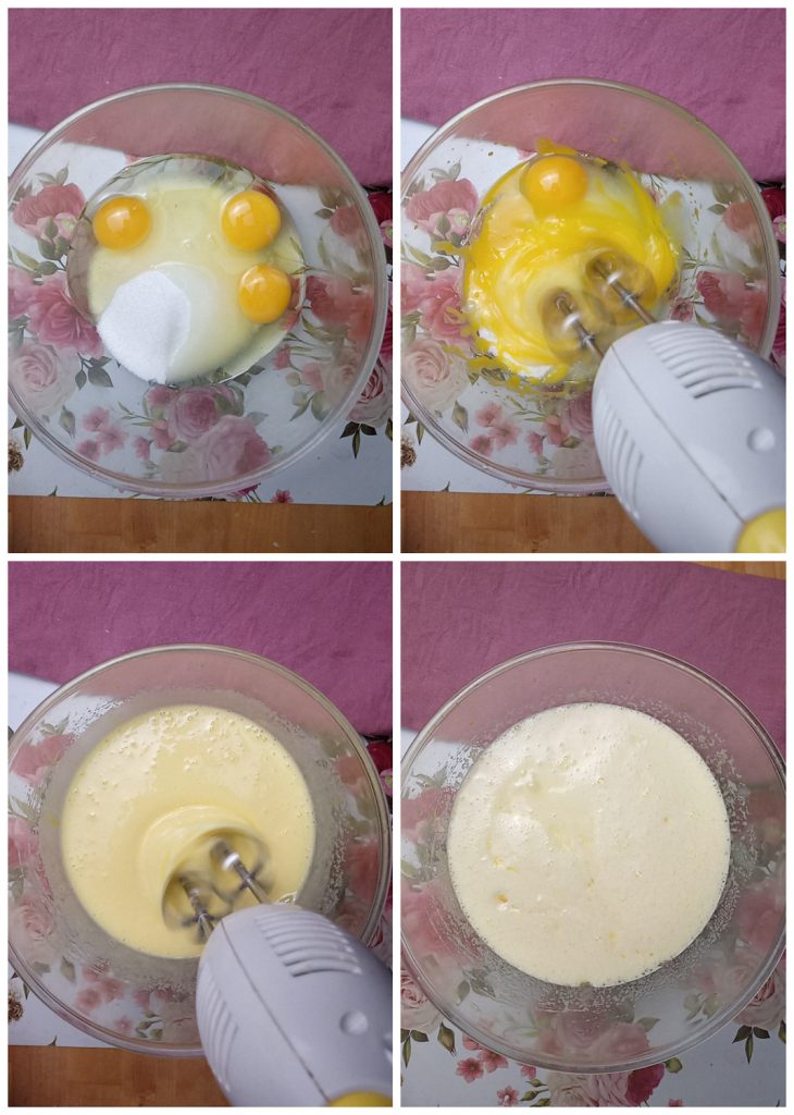 Travaillons avec des fouets électriques jusqu’à obtenir un mélange clair et mousseux.