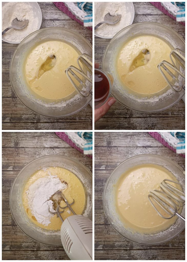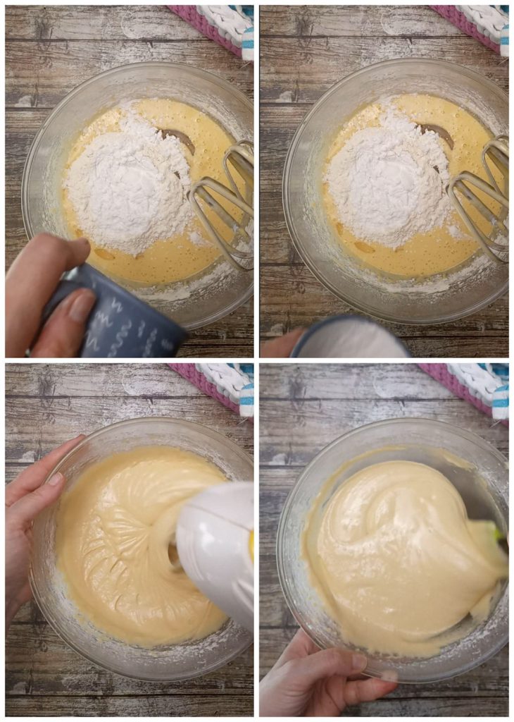 Ajoutez ensuite 4 cuillères à soupe de farine et mélangez toujours avec les fouets électriques.