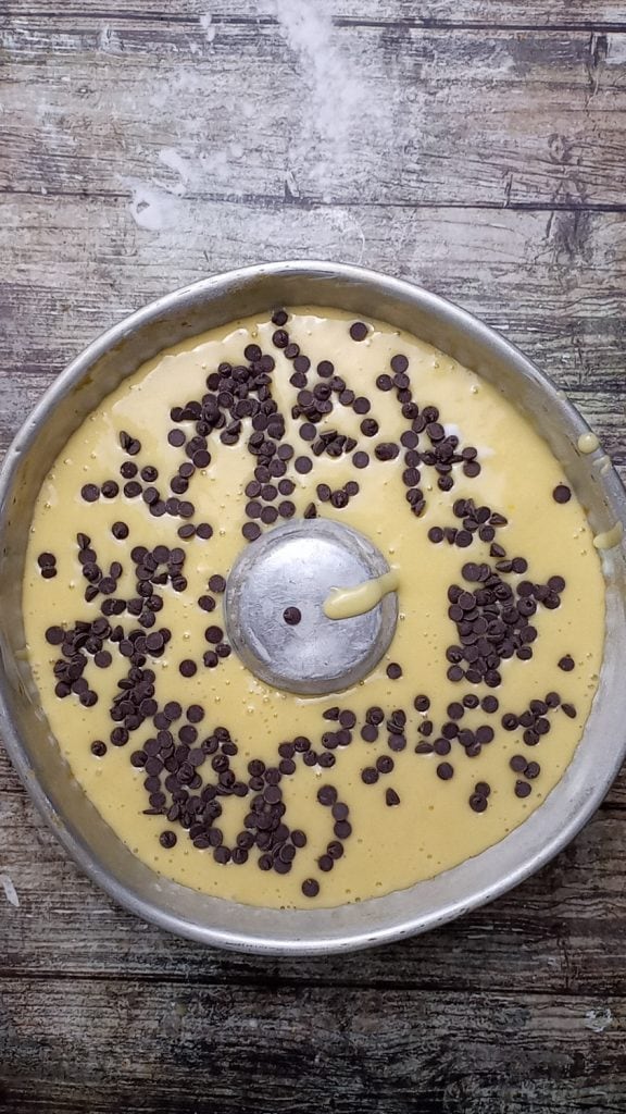 Nous décorons la surface avec des pépites de chocolat au choix.