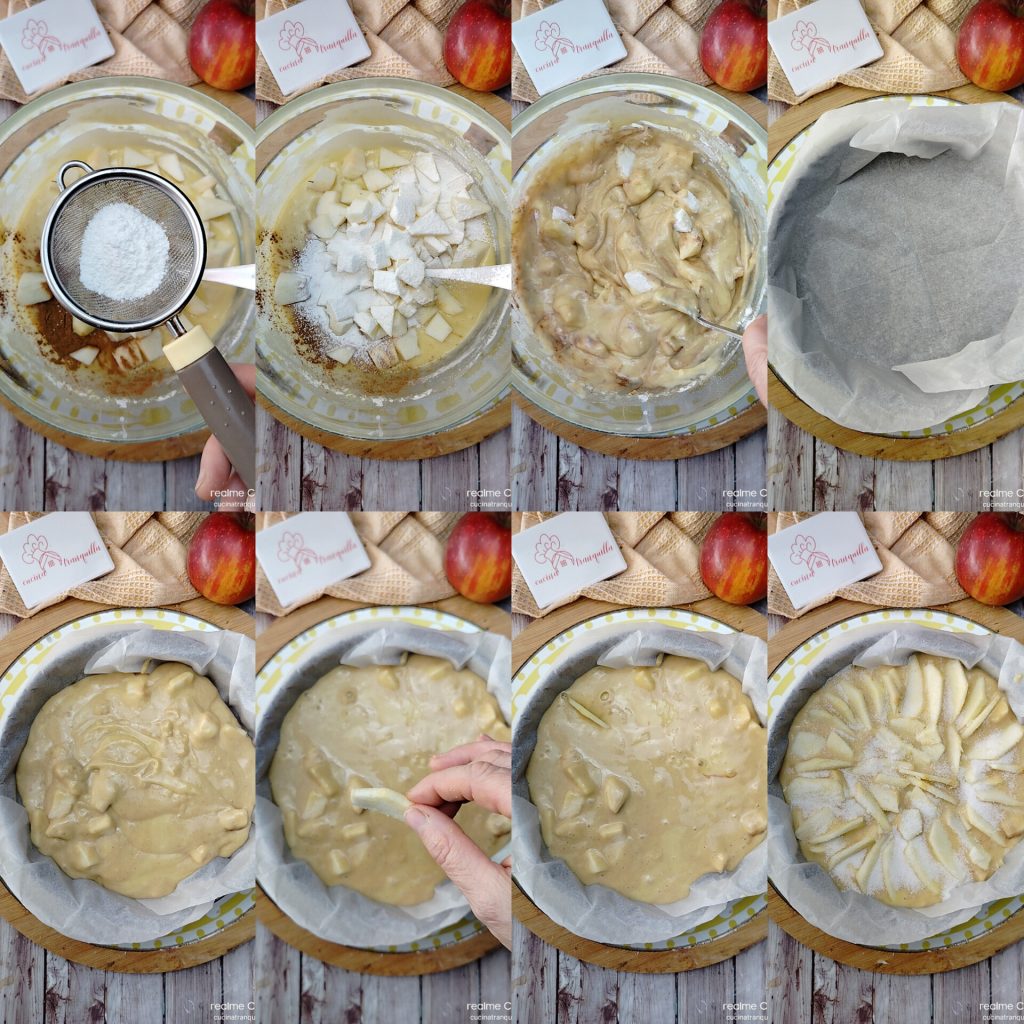 Versez ensuite l’huile de tournesol et la farine. Mélangez à nouveau rapidement avec une fourchette jusqu’à obtenir une pâte homogène à laquelle vous ajouterez également la cannelle. Ajoutez deux des trois pommes prévues par la recette, coupées en dés après les avoir pelées et épépinées.