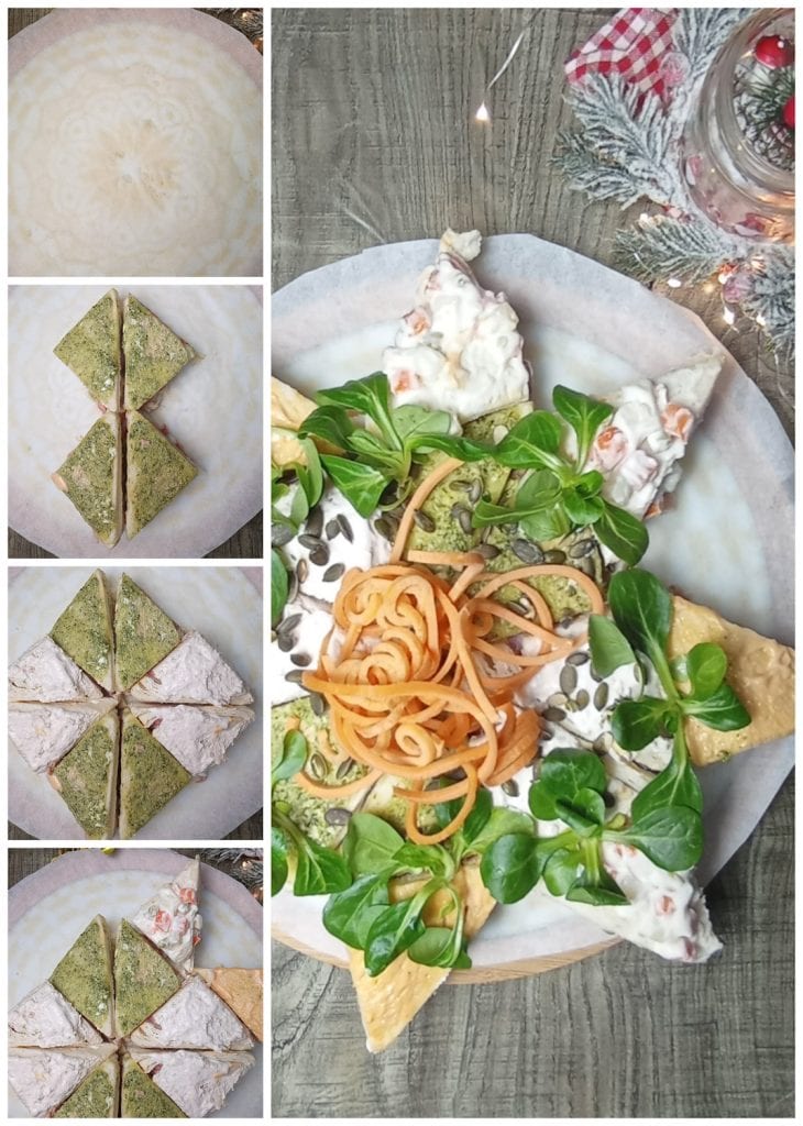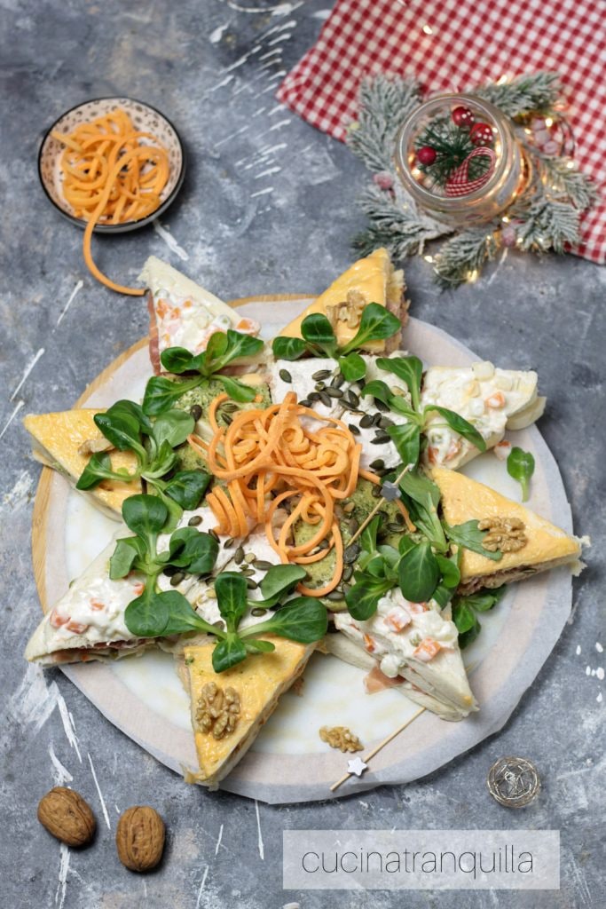 Gâteau étoile sandwich pour le Nouvel An, un gâteau salé en couches, gourmand, appétissant et irrésistible, sans cuisson.