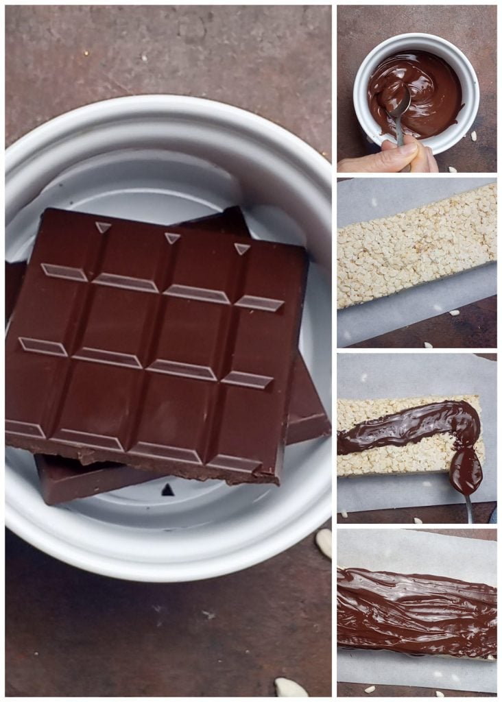 Après ce temps, faisons fondre le chocolat comme nous le préférons, au micro-ondes à 800w pendant 3 minutes en plusieurs fois pour éviter de le brûler ou au bain-marie.