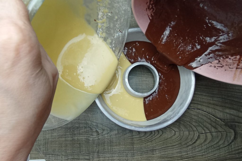 La seule difficulté réside dans le fait de verser les deux pâtes en même temps, mais il suffit de se procurer deux carafes pour faciliter la tâche et le tour est joué.