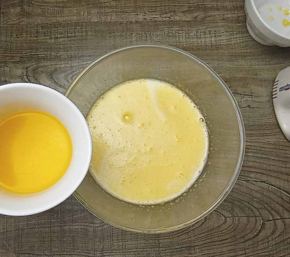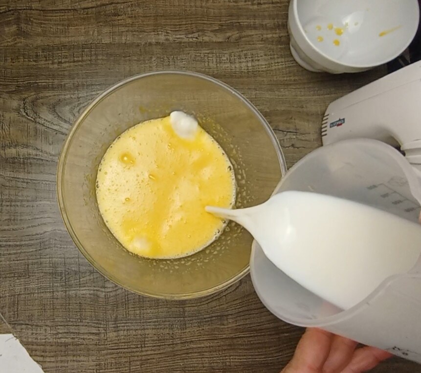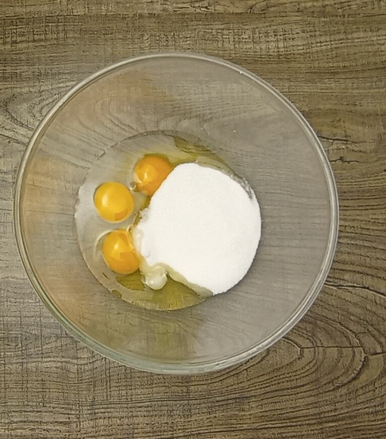 Dans un saladier, travaille ensemble les œufs avec le sucre pendant deux minutes.