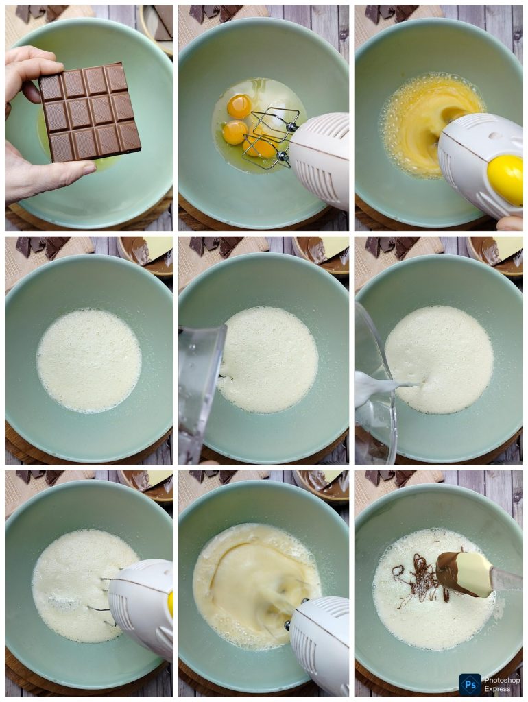 Dans un bol plus grand, travaillez les œufs avec le sucre à l’aide d’un batteur électrique pendant 2 minutes.