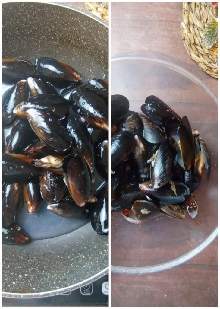 Pour cette recette, j’ai utilisé des moules déjà nettoyées, mais vous pouvez aussi utiliser celles décoquillées surgelées ou celles fraîches.