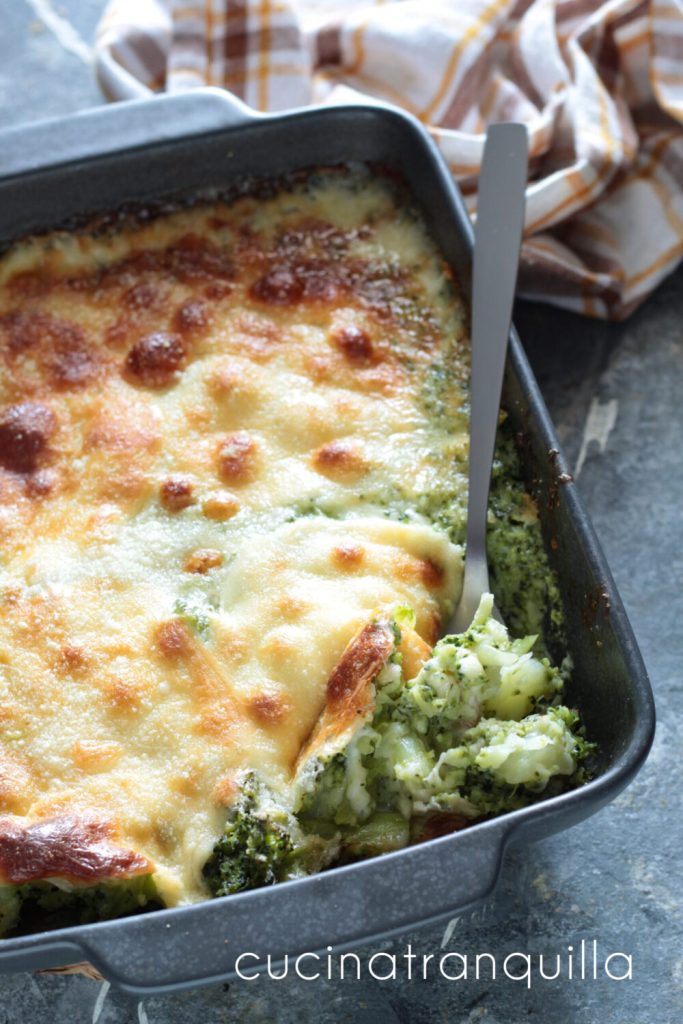 Gratin de brocoli et fromages, une recette simple et délicieuse, idéale comme deuxième plat. C’est une sorte de flan de légumes mais riche en délicieux fromages. J’ai utilisé de la scamorza, du fromage râpé et du gorgonzola, avec de la provola, mais vous pouvez vous amuser comme vous voulez. Vous pouvez également utiliser ceux sans lactose ou varier les ingrédients à associer aux brocolis selon vos goûts, mais je vous assure que cette recette, faite ainsi, est vraiment délicieuse. Ci-dessous, je vous laisse d’autres recettes à réaliser avec les brocolis, y compris une bonne collection, tandis qu’à la fin des étapes photographiques qui accompagnent et expliquent mon idée, je réponds à quelques questions communes.