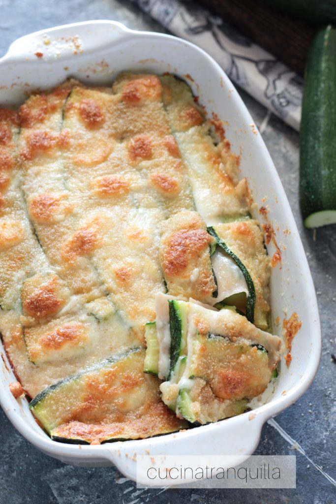 Je vous laisse une indication de la quantité de courgettes dans la recette pour composer 4 couches dans un plat de 30 cm x 20, mais vous pouvez l’adapter aux plats que vous avez, tant en termes de couches que de taille.
